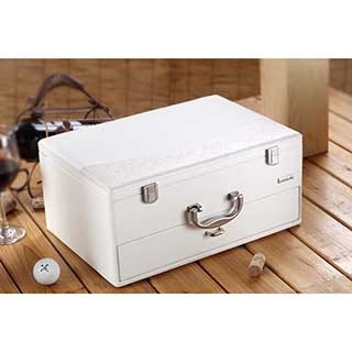 电动开瓶器,充电器,割纸器,倒酒器,便携式真空 酒塞,智能酒温表,分体式醒酒器,醒酒器底座,支架, 手动真空泵,记时酒塞2只. 1、高档仿皮、双层复式包装,豪华大气 2、全套高端酒具配件:功能齐全、华贵。 3、适应高端商务礼品、会议礼品、节日礼品。