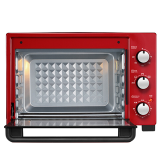 1、32L容量,适合家庭烘焙使用 2、旋钮式操作,简单易懂 3、钻石型内胆,提高热反射,均匀受热 4、4管均衡加热,快速加热使食材上下平衡受热 5、发蓝加热管,加热快,更节能,寿命长 6、4层烤架位,自由摆放,灵活调节 7、喜庆红色,馈赠佳品,符合国人